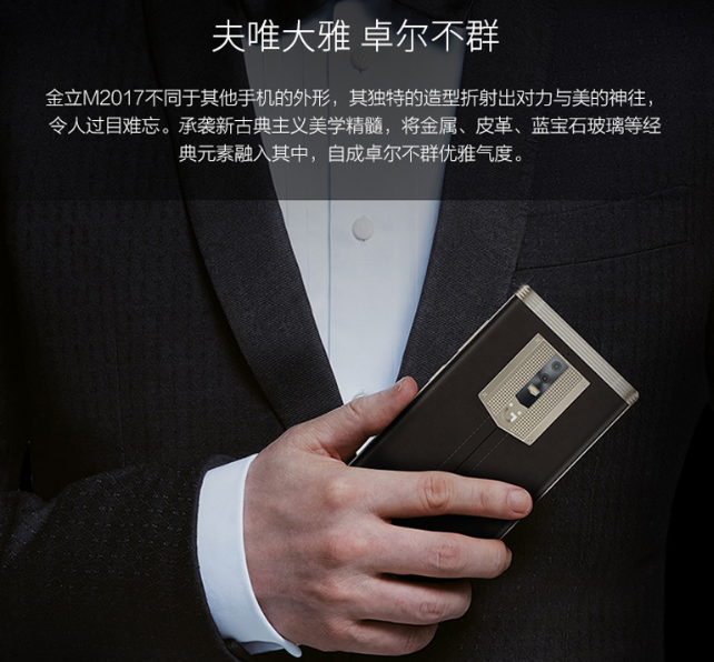 在產(chǎn)品布局上,金立從沒跳入低價競爭的泥潭,反而一直在布局中端和高端市場,特別是最高端的商務(wù)市場。2017年即將到來之際,金立M2017發(fā)布,獲著名導(dǎo)演馮小剛和夫人徐帆攜手代言,再一次拔高了我們對這款高端商務(wù)旗艦的期待。
