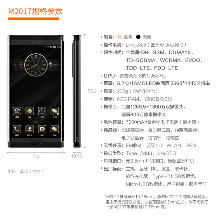金立M2017商務(wù)奢華超級續(xù)航手機